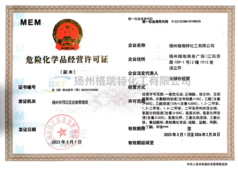 揚州格瑞特化工有限公司生產工廠坐落于江蘇省海安縣胡集工業(yè)園區(qū)和海安精細化工工業(yè)園。總公司成立于1999年,是集科、工、貿為一體的現代化生產型企業(yè)。專業(yè)致力于水處理劑、紡織印染助劑、化纖油劑等產品的科研、開發(fā)、生產和銷售。總公司占地面積40000m,建有現代化標準廠房,擁有先進的生產設備。年產各類水處理劑系列產品12000噸,紡織印染助劑5000噸,產品12個系列40多個品種。總公司注重技術投入,設立產品研發(fā)中心和環(huán)保運營中心,聘請了多位專家為公司技術顧問,并和多個重點院校建立了長期技術合作開發(fā)關系,是南通大學、江南大學、南京工業(yè)大學產學研基地。